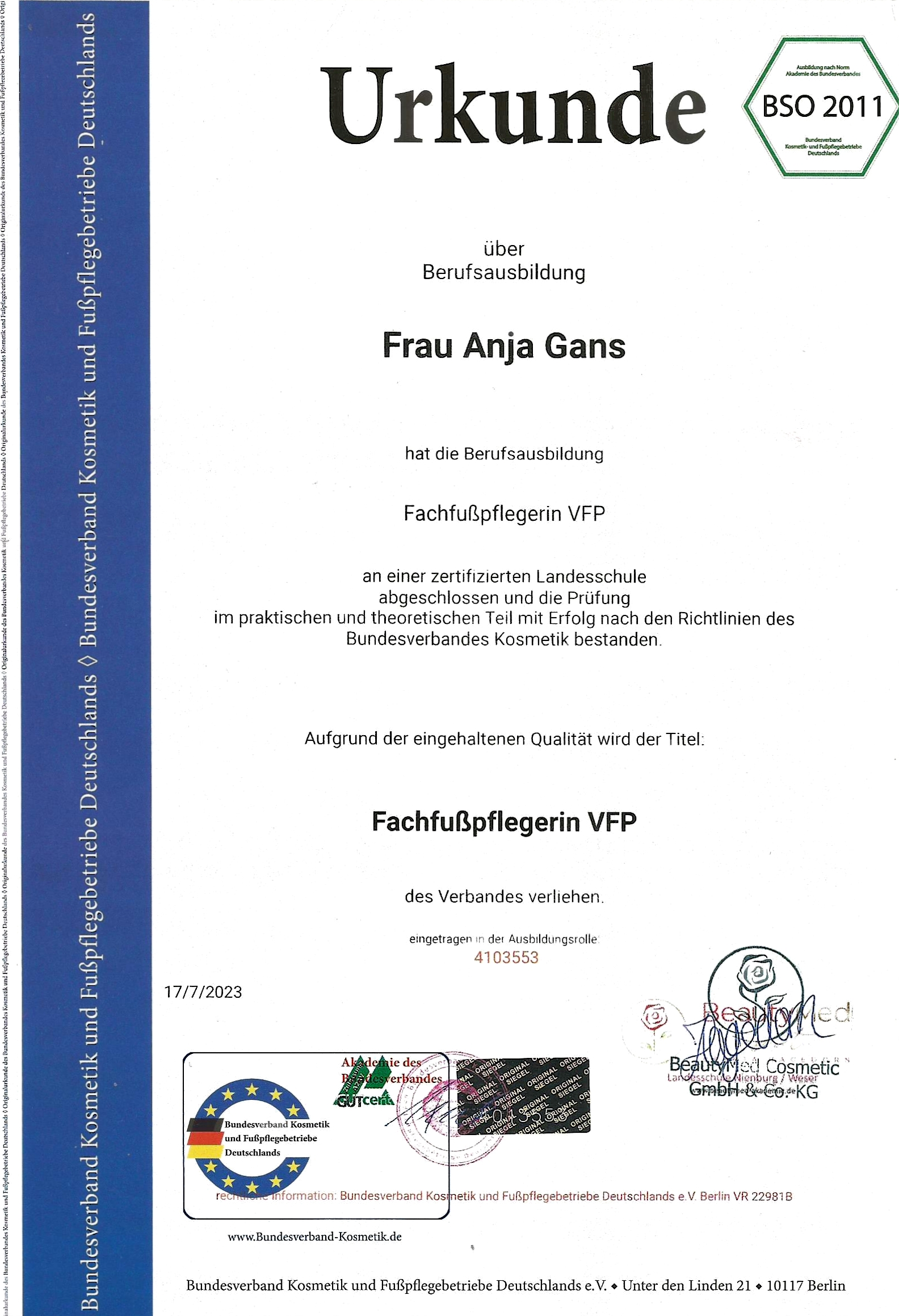 Ich bin Anja Gans, gelernte Krankenschwester mit langjähriger Erfahrung im Gesundheitswesen und seit Mitte 2023 mit Herz und Fachwissen in der mobilen Fußpflege für Sie im Raum Leipzig und Eilenburg unterwegs.